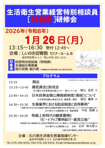 「生活衛生営業経営特別相談員『特相員』研修会」のお知らせ