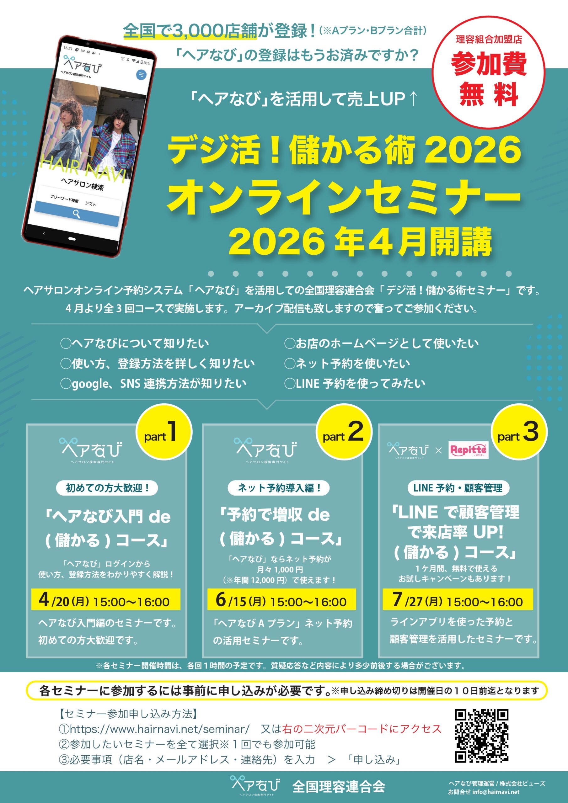 デジ活!儲かる塾2026「ヘアなび オンラインセミナー」開催のお知らせ