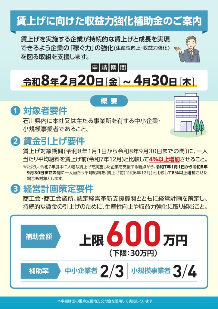 「賃上げに向けた収益力強化補助金」のお知らせ