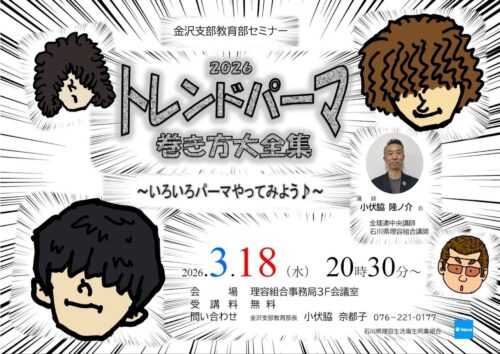 「2026 トレンドパーマ 巻き方大全集」(金沢支部教育部セミナー)開催のお知らせ